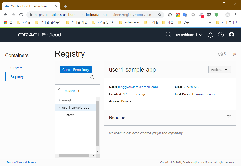 OCIR에 등록된 이미지는 다음과 같이 보여지게 됩니다.